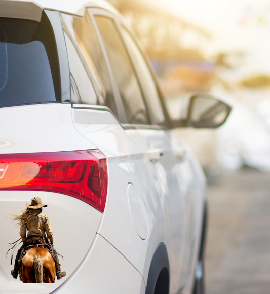 Car Magnet - Western Female Horse Rider Back View Magnet - 5.0" x 6.77"